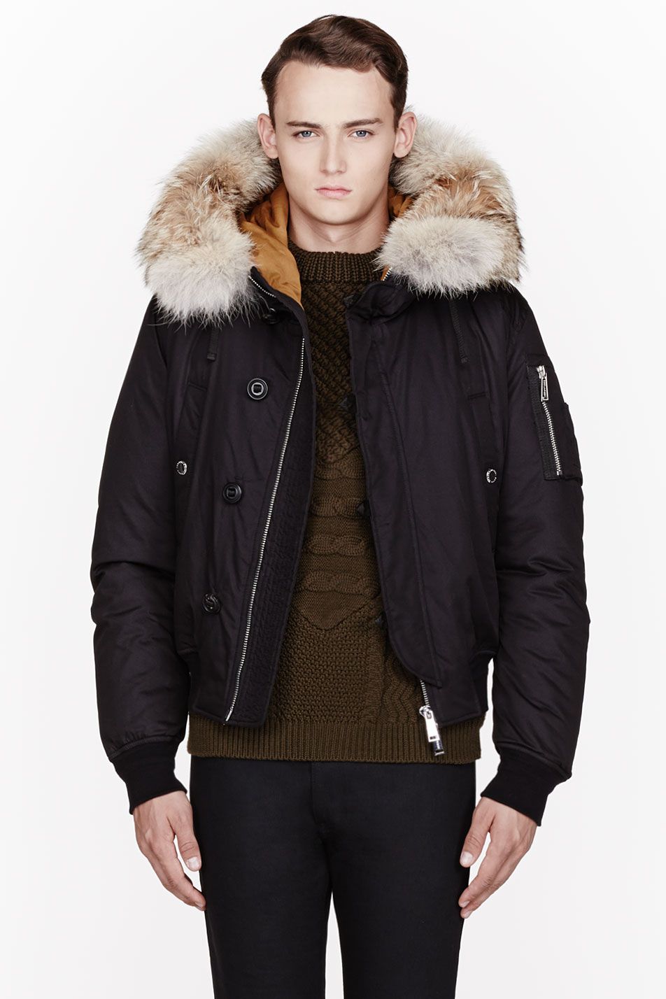 Buy Black puffed coyote trimmed bomber jacket, Dsquared2 for men on Pickture, in trends like Black, bomber, jacket