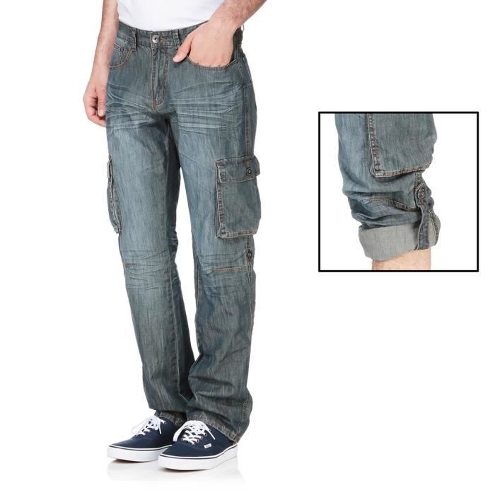 Bleu délavé. Denim 100% coton, bouton. Jean 6 poches.