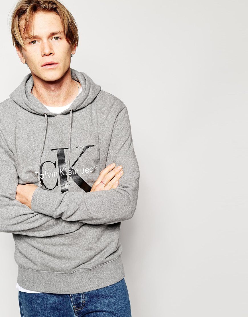 Calvin Klein Jeans - Sweat à capuche style 90's - Gris