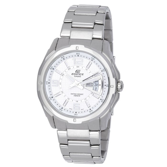 Montre en acier sur un bracelet de coloris argenté. Cadran blanc doté d'un affichage analogique. Mouvement quartz. Montre résistant a une pression de 10 Atm.