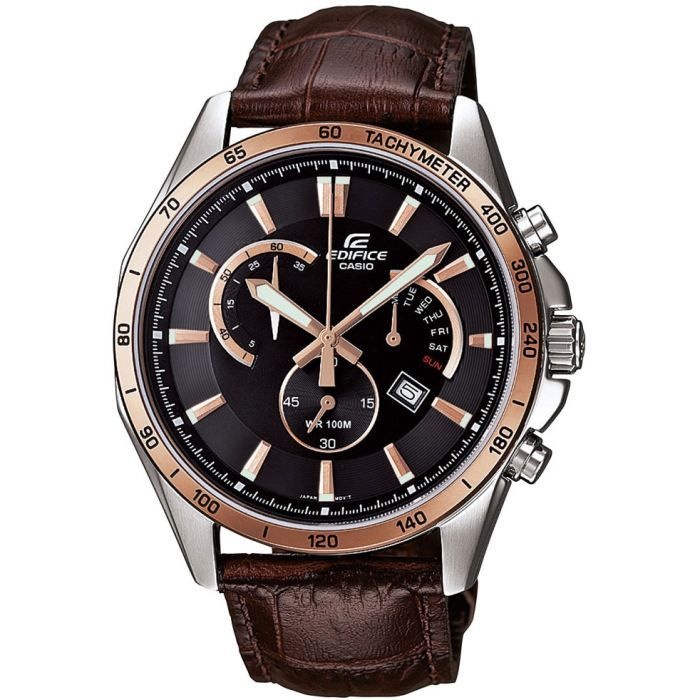 Montre en acier sur un bracelet en cuir de coloris marron. Cadran marron doté d'un affichage analogique. Mouvement quartz. Montre résistant a une pression de 10 Atm.