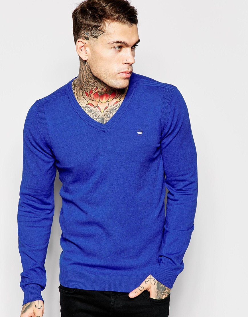 Diesel - - K-Benti - Pull en maille légère col V - Bleu