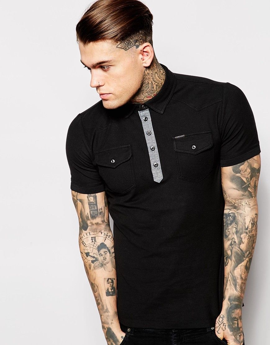• Diesel - T-Eghe - Polo western en pique style 2's - Noir