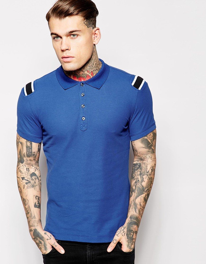 Diesel - - T-Eogago - Polo en piqué avec empiècement rayé - Bleu
