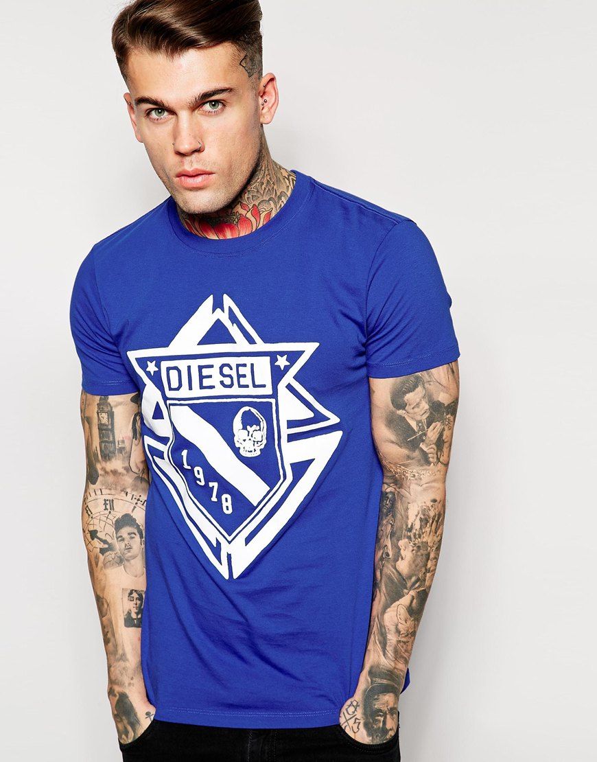 • Diesel - T-Scod - T-shirt à écusson griffé - Bleu