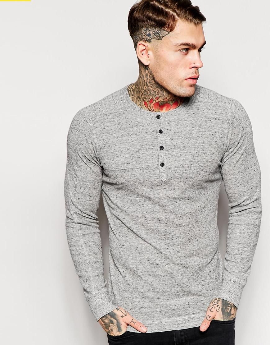 • Diesel - T-Serak - Top grand-père à manches longues effet chiné - Gris