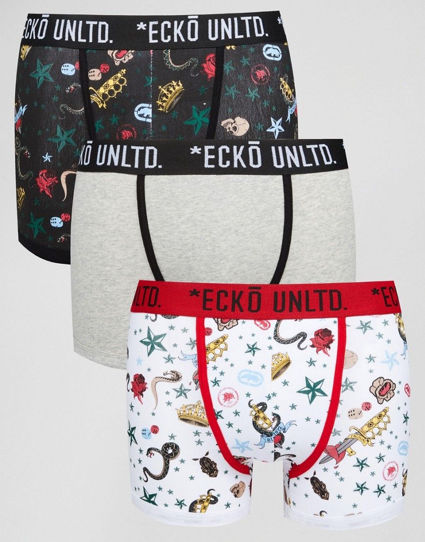 Lot de boxers par Ecko Lot de trois Jersey stretch Ceinture griffée Styles variés Coupe ajustée Lavage en machine 95% coton, 5% élasthanne