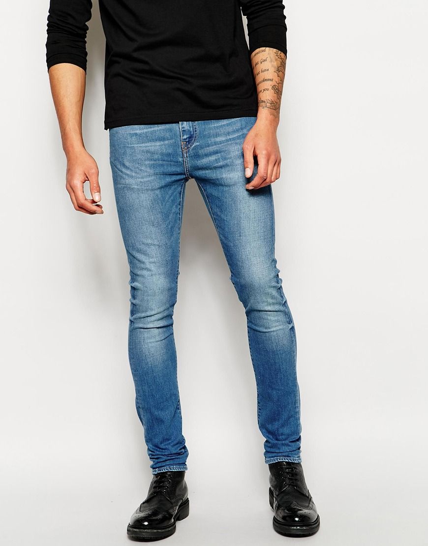 • Edwin - ED-88 - Jean skinny compact et stretch effet usé - Bleu moyen - Bleu