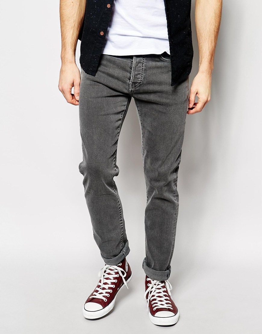 • Edwin - ED80 - Jean slim fuselé délavé par trempage - Gris vieilli - Gris usé