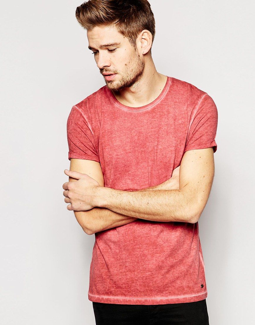 • Esprit - T-shirt effet dĂ©lavĂ© huilĂ© - Rouge