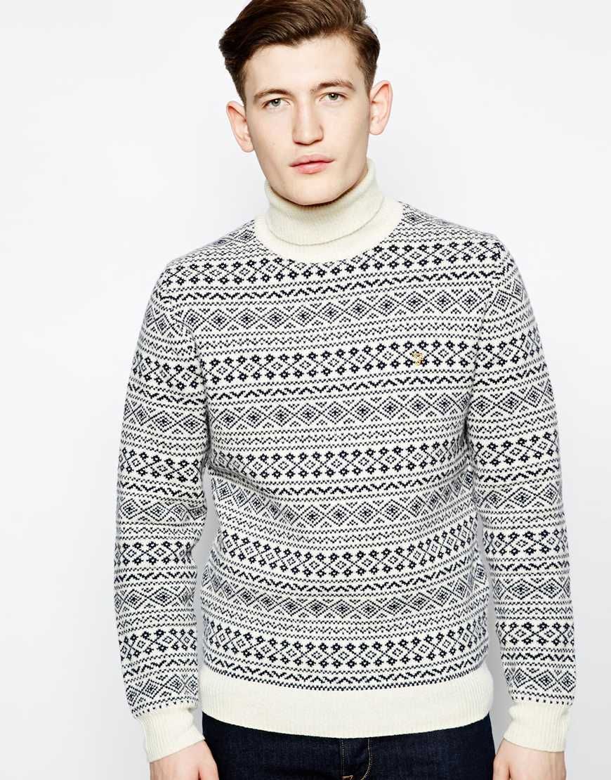 Farah - Pull à motifs avec col roulé - Bleu marine