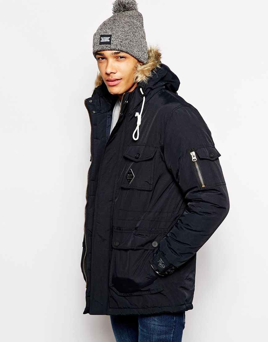 Buy Fly 53 - Parka avec capuche bordée de fausse, parka Fly 53 for men on Pickture, in trends like Parka, fourrure, Noir