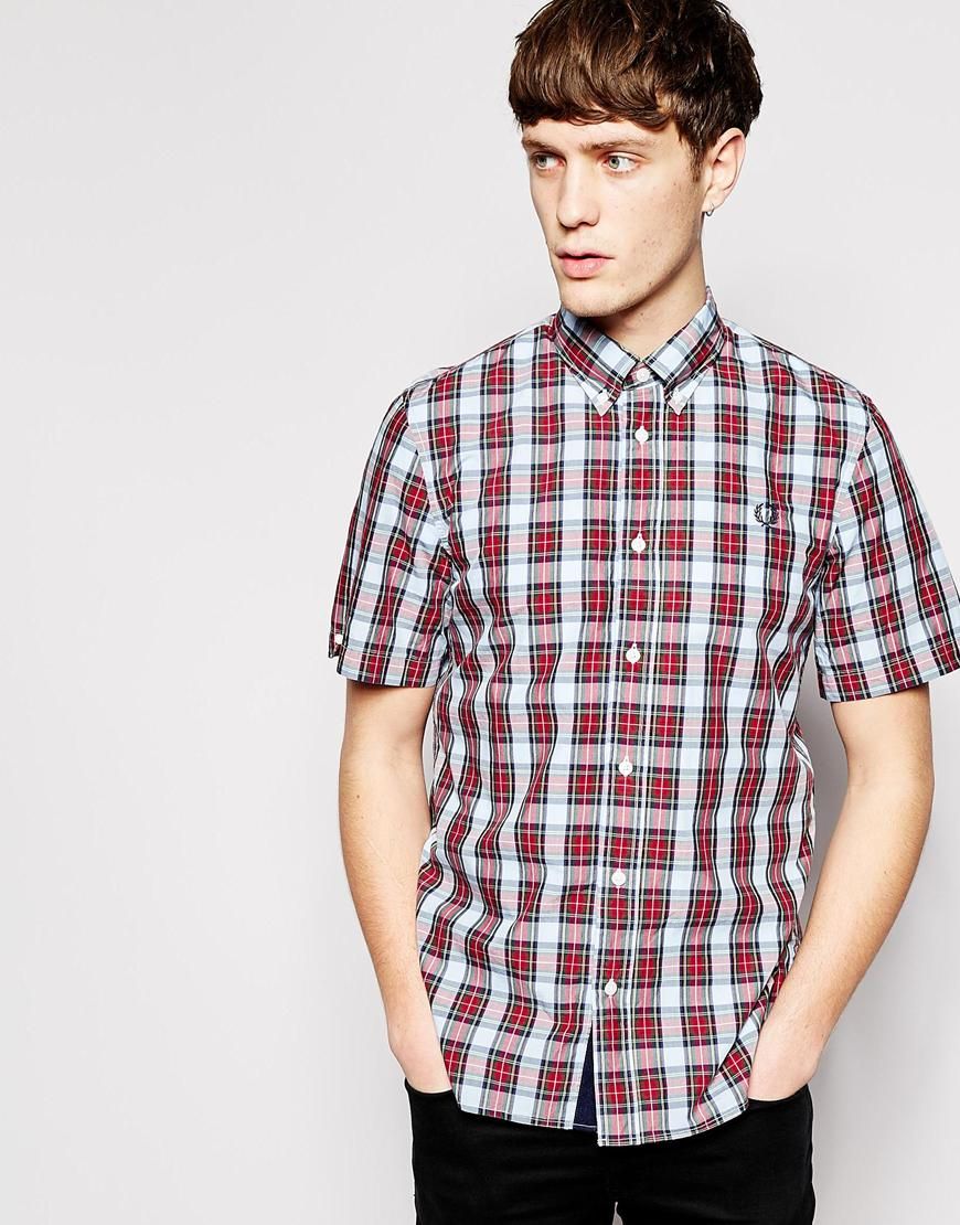 Fred perry - - Chemise manches courtes à carreaux écossais - Bleu