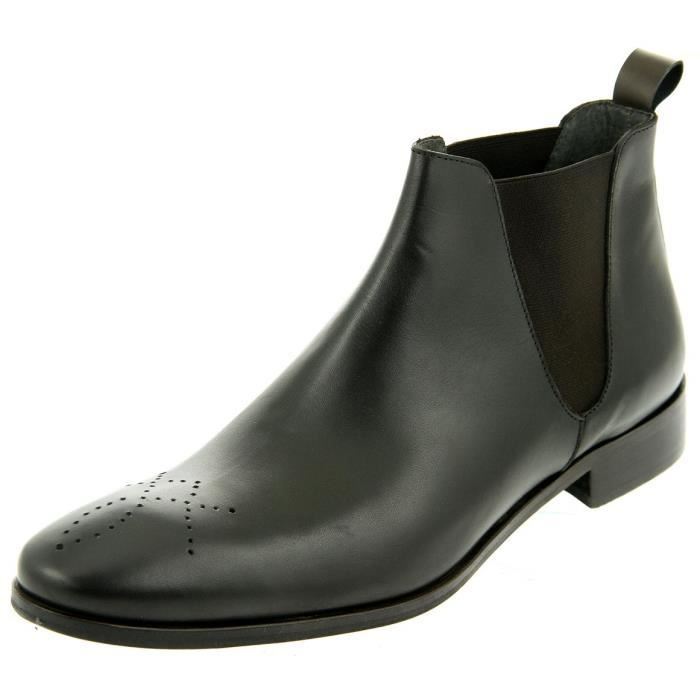 Bottines a enfiler en cuir avec bandes élastiquées sur les côtés, petites perforations sur le bout de la chaussure, coloris marron. A shopper d'urgence !