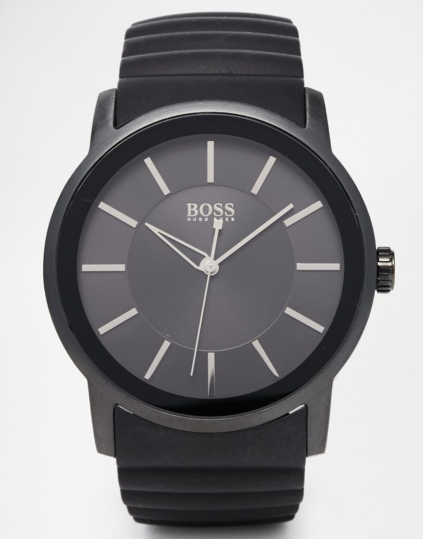 • Hugo Boss - Montre avec bracelet en caoutchouc - Noir - Noir