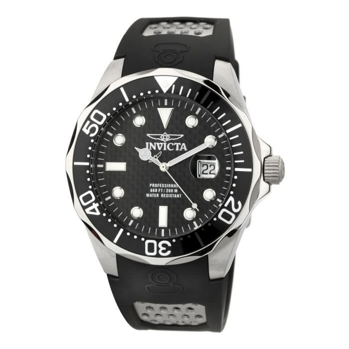 Montre en acier sur un bracelet en silicone de coloris noir. Cadran noir doté d'un affichage analogique. Mouvement quartz. Montre résistant a une pression de 3 Atm.