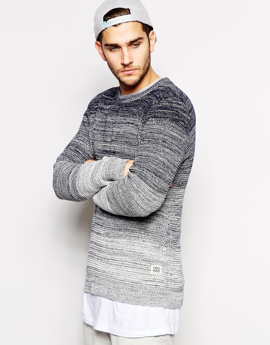 • Jack & Jones - Pull en tricot à rayures effet dégradé - Caban bleu