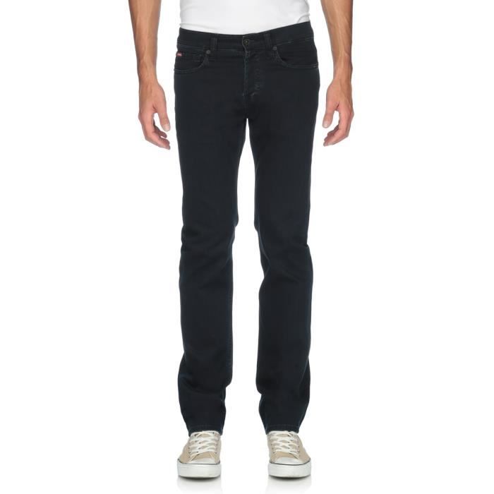 Jean noir a coupe droite. Fermeture zip. Jean 5 poches.