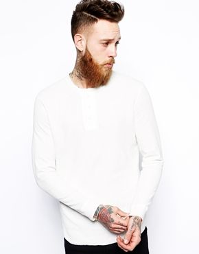 • Levi's - Top manches longues cintrĂ© Ă  col boutonnĂ© et fini cĂ´telĂ© effet gaufrĂ© - FumĂ©e blanche