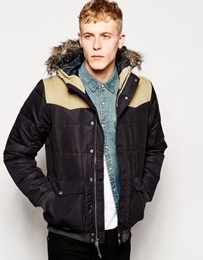 • Levi's - Veste à capuche avec matelassage carré et empiècement en velours côtelé aux épaules - Noir