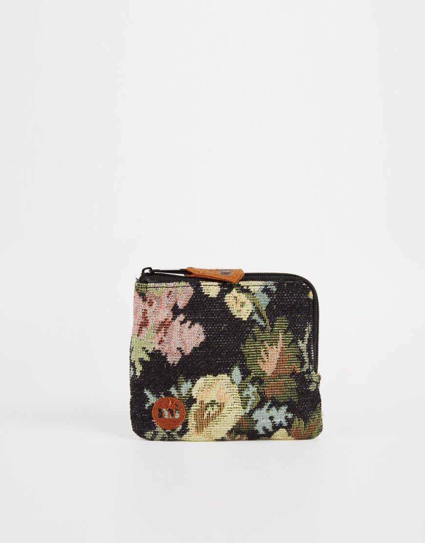 • Mi-Pac - Portefeuille zippé à motif roses style tapisserie - Noir