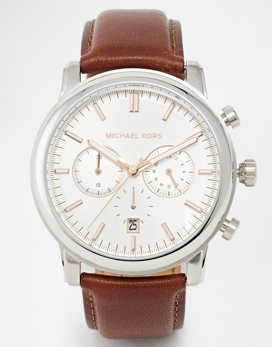 • Michael Kors - Landaulet MK8372 - Montre chronographe à bracelet en cuir marron - Marron