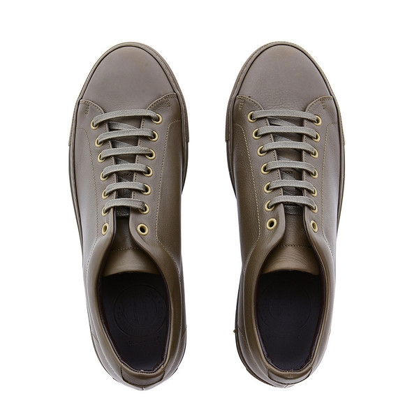 • Minimalist army green color leather sneaker
