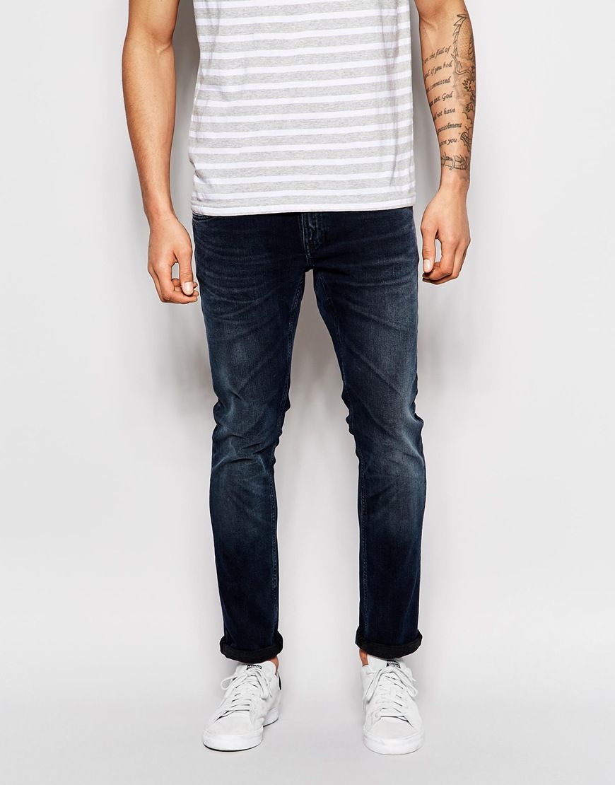 Nudie jeans - Nudie - Long John - Jean skinny délavé usé - Noir surteint - Bleu