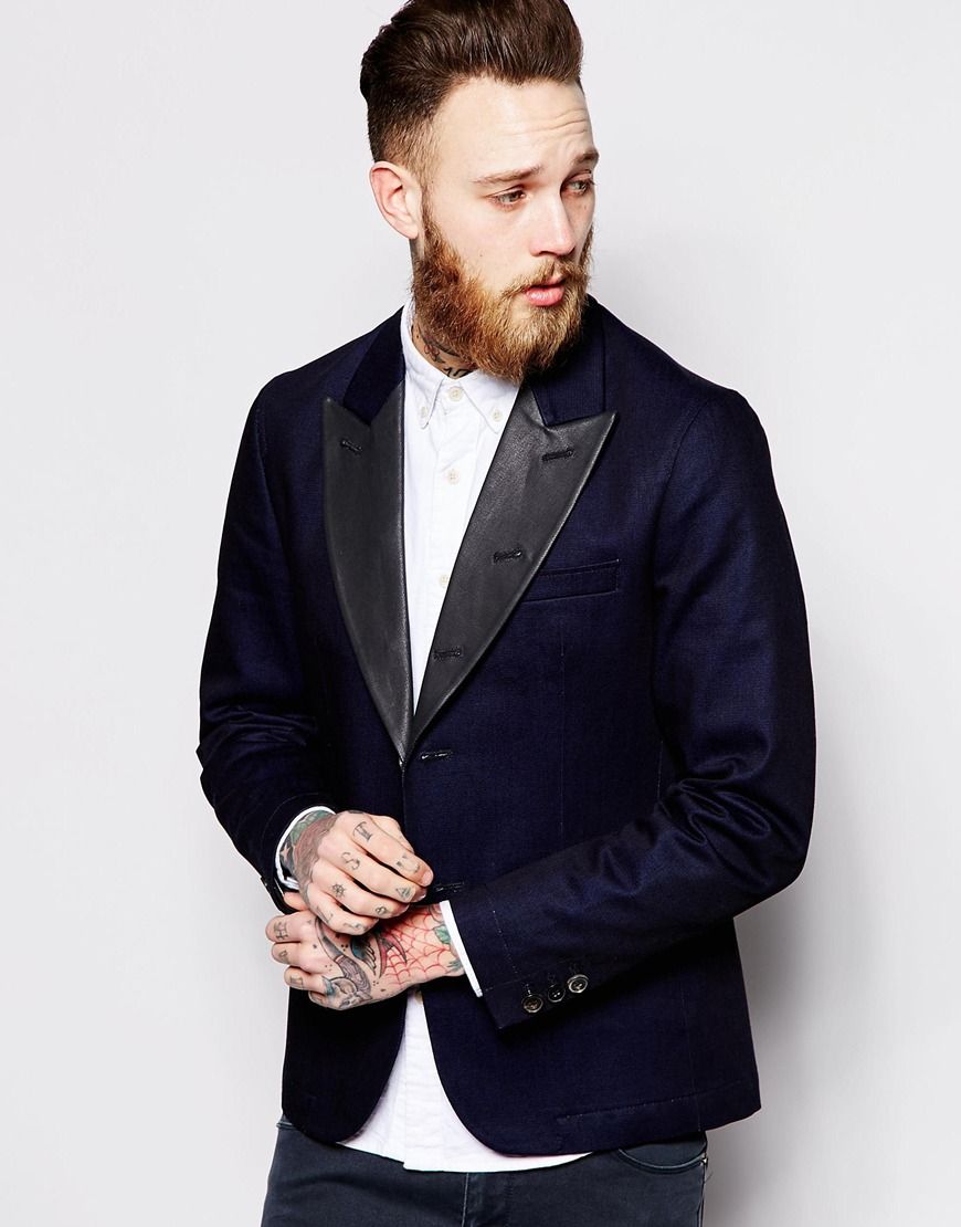 • Nudie - Wilhelm - Veste de smoking en jean enduit à revers noirs - Bleu