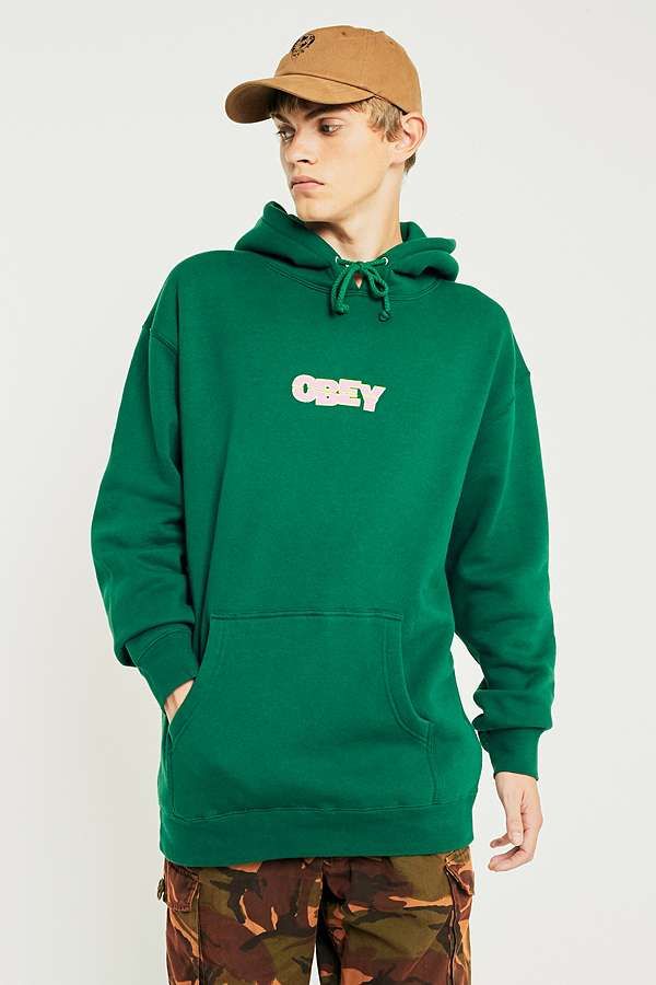 • OBEY Sweat à capuche enfiler avec logo déchiré vert foncé