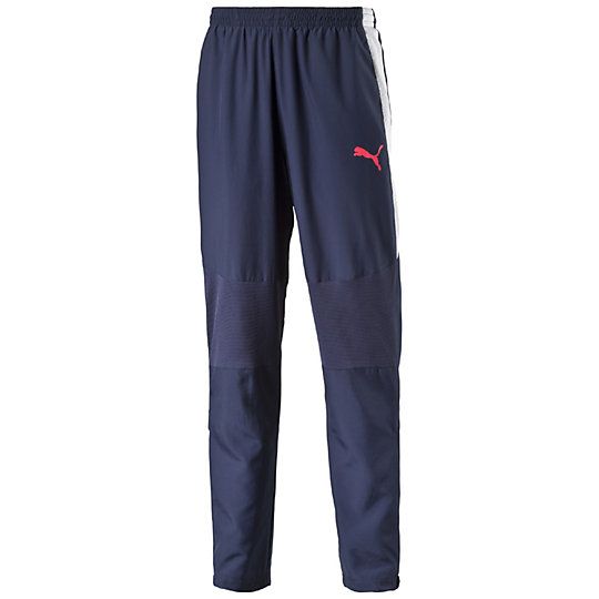 Pantalon evoTRG de foot : Ce pantalon de survêtement evoTRG tissé de PUMA te procure une performance complète pendant tes exercices. evoTRG est une ligne de produit performante pour la performance intégrée dans un concept parfaitement harmonisé. Filet pour une meilleure circulation de l'air. Transport de l'humidité de manière biologique. Bande latérale PUMA pour plus de dynamique. Bord élastique à la taille avec cordon. Fermeture zippée pratique en bas des jambes. Matériau microfibre léger et résistant. Matériau Popeline anti-froissage.