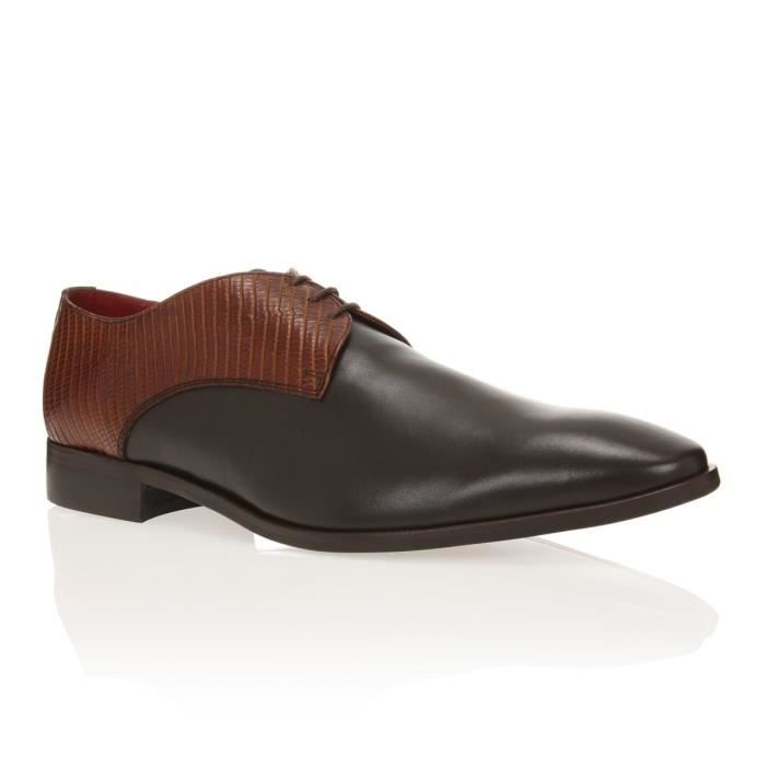 Derbies tige basse en cuir lisse et cuir façon lézard, marron.