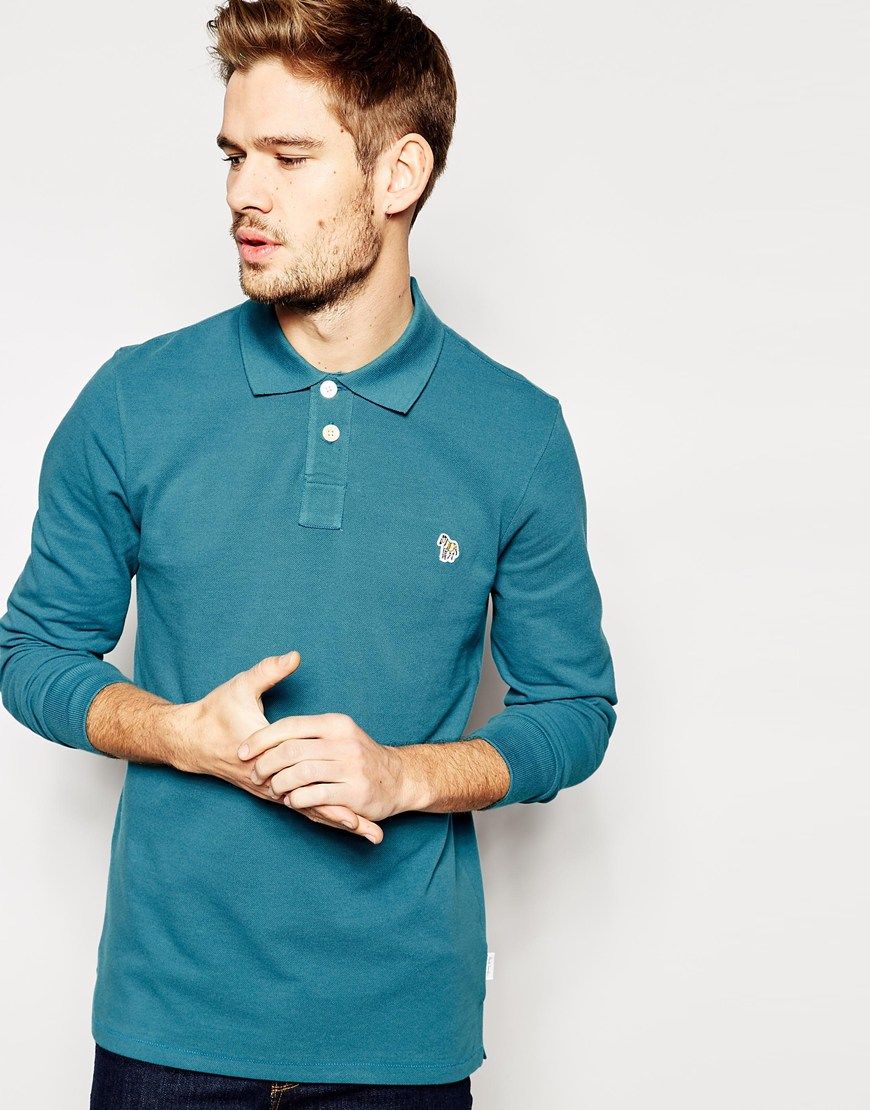 • Paul Smith Jeans - Polo classique zébré à manches longues et coupe regular - Bleu