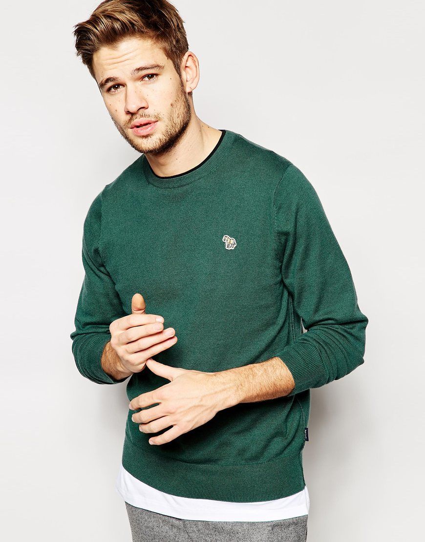 Paul Smith Jeans - Pull ras du cou avec logo zèbre - Kaki