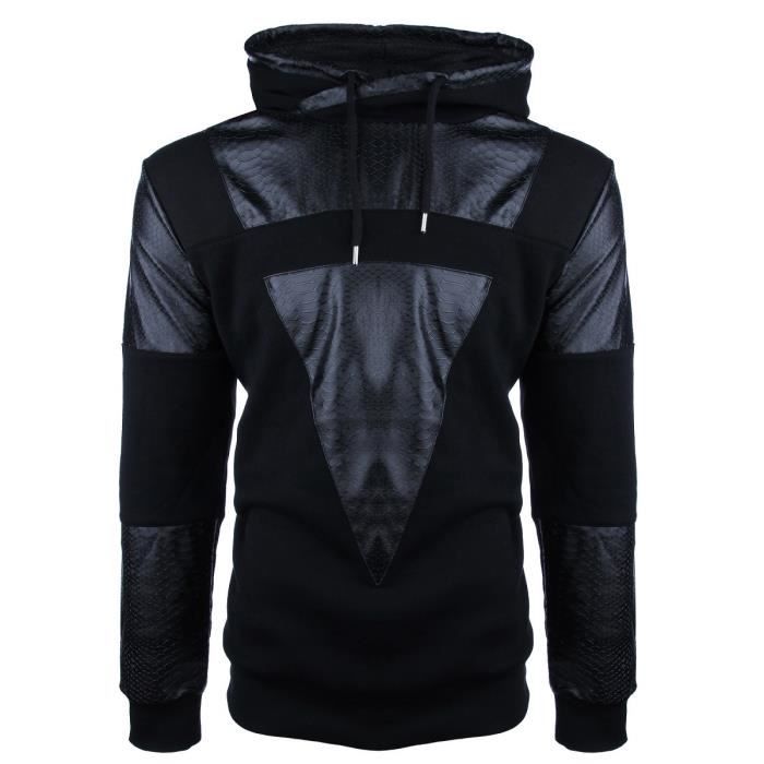 Sweat a capuche, 55 % coton, 45 % polyester, noir. Manches longues, poignets et base en côtes.