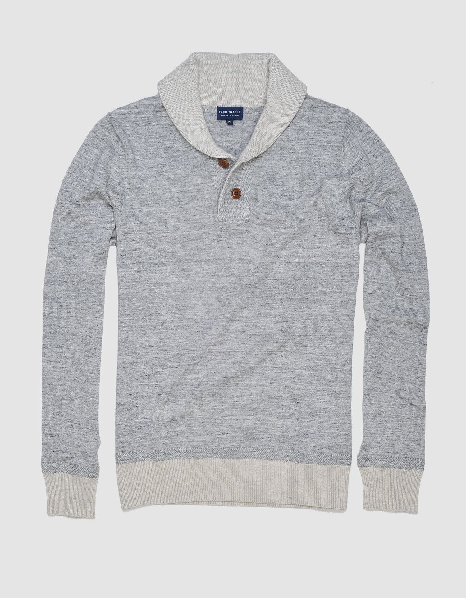 Faconnable - Pullover à Col Châle en Coton Jaspé