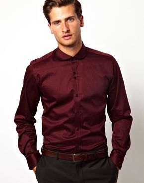 Buy Red Eleven - Chemise cintrée à petit col rond, chemise Red Eleven for men on Pickture, in trends like Red, Chemise, Bordeaux, Rouge