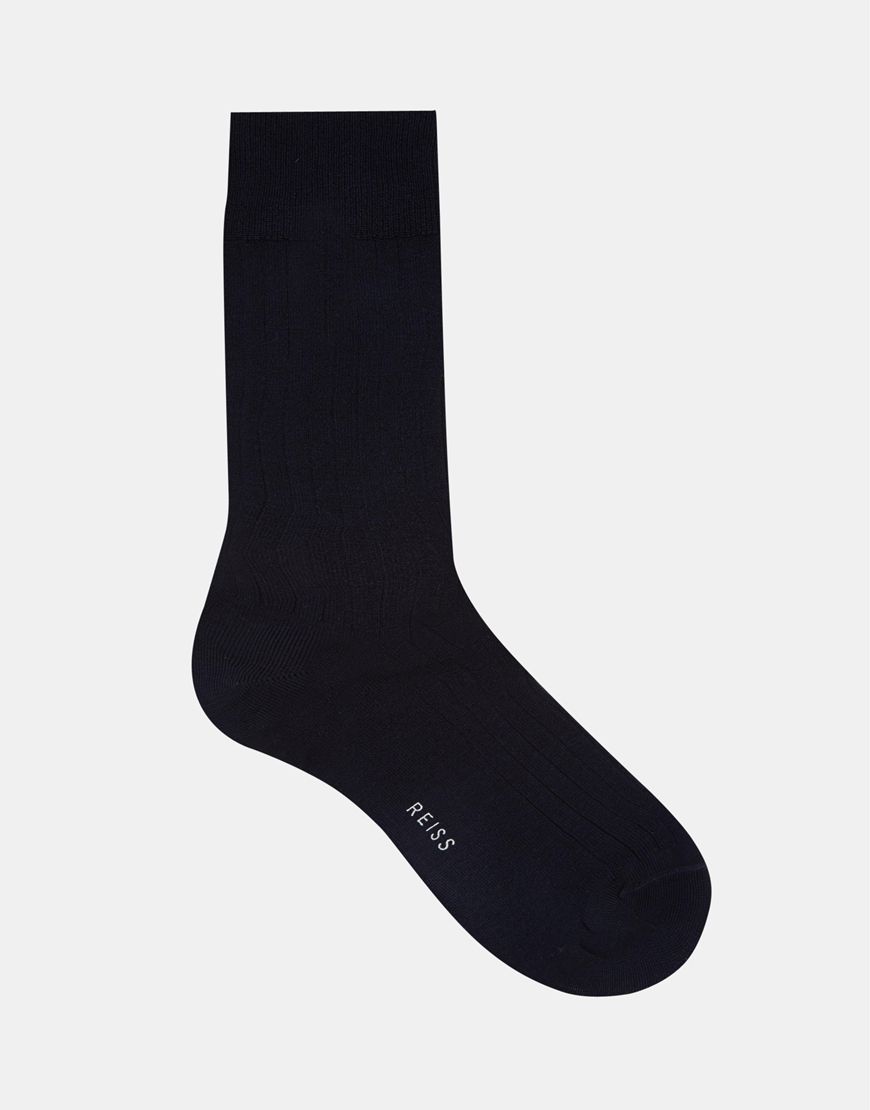 • Reiss - Chaussettes unies avec côtes - Bleu marine