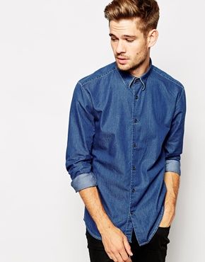 Buy Selected - Chemise en chambray, jean chemise Selected for men on Pickture, in trends like Chemise, Jean, bleu