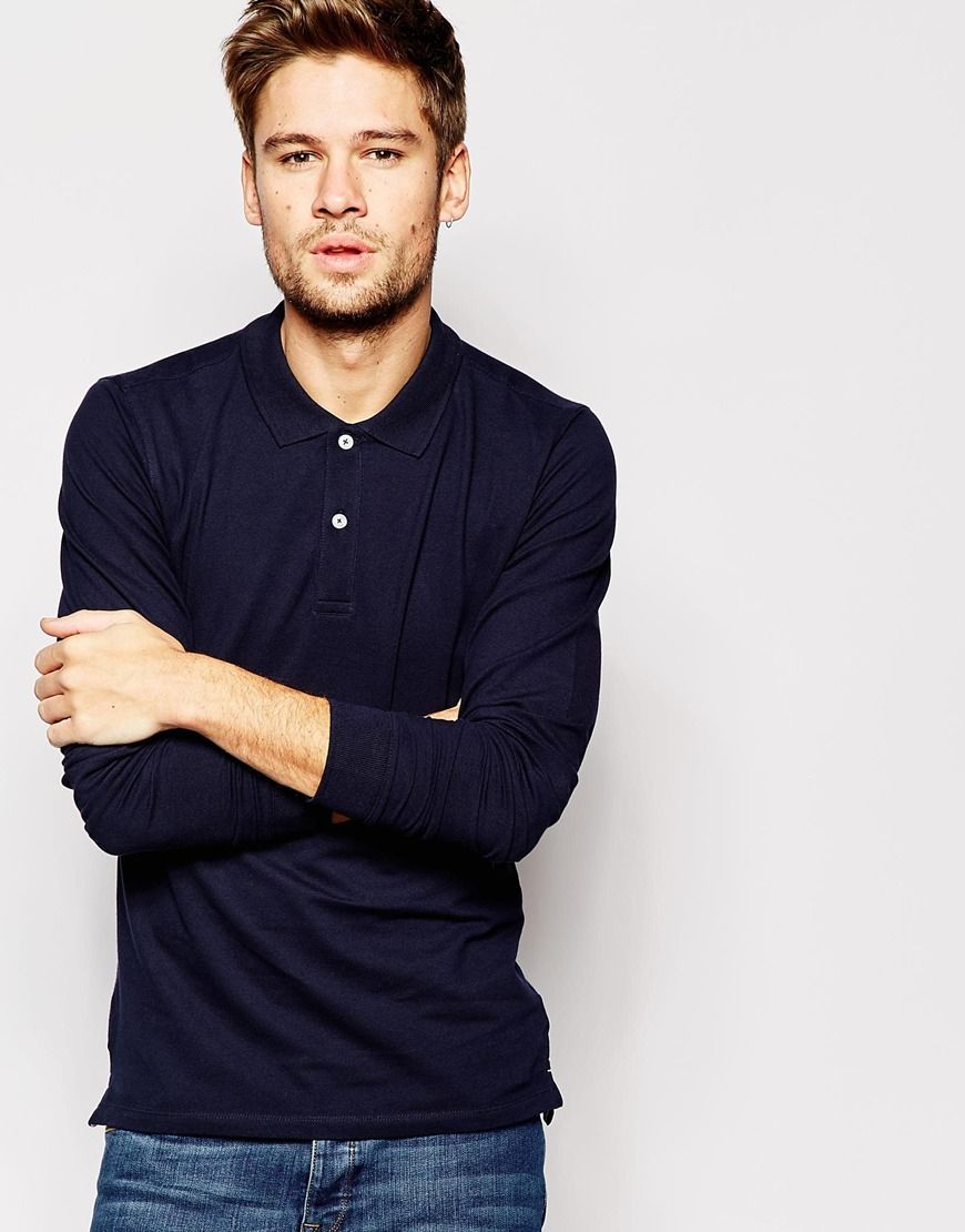 Buy Selected - Polo en piqué à manches longues, polo Selected for men on Pickture, in trends like Polo, Bleu, marine