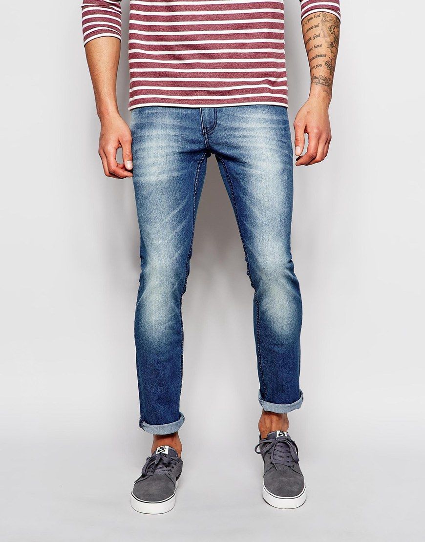 • Solid - Jean skinny à délavage moyen - Bleu moyen