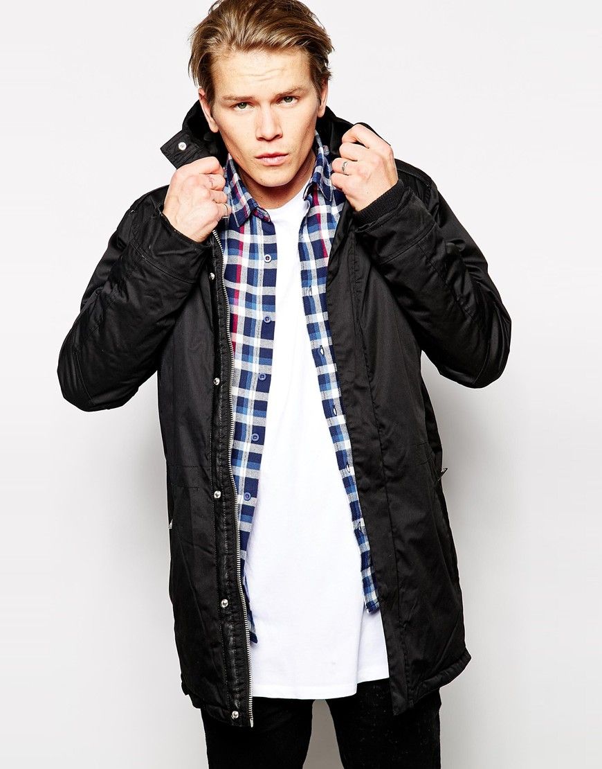 Solid - Parka de qualité supérieure forme « queue de poisson » - Noir
