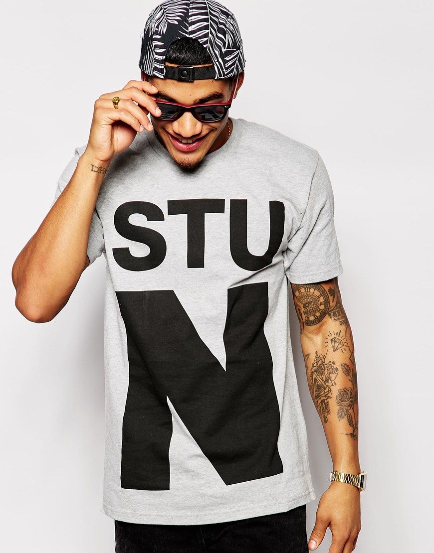 Buy Stussy - T-shirt avec grand imprimé, t-shirt Stussy for men on Pickture, in trends like Stussy, Gris