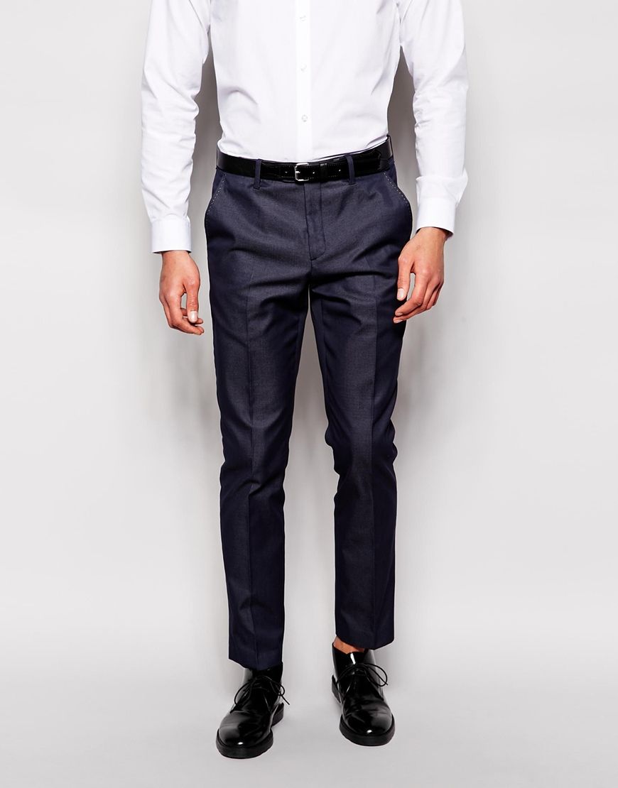 Ted baker - - Pantalon de costume en coton coupe slim - Bleu marine