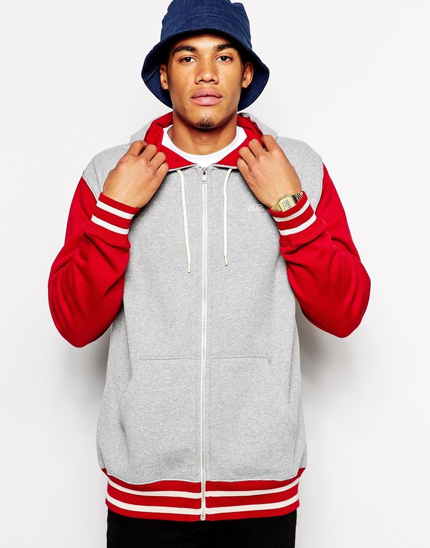 Vans - - Sweat à capuche en color block avec fermeture éclair - Gris