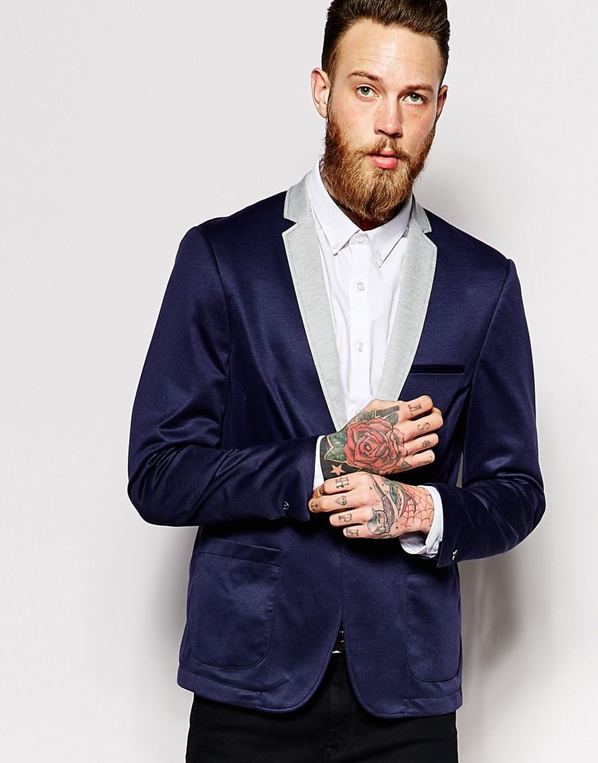 Vito - Blazer cintré en jersey avec revers contrastants - Bleu marine