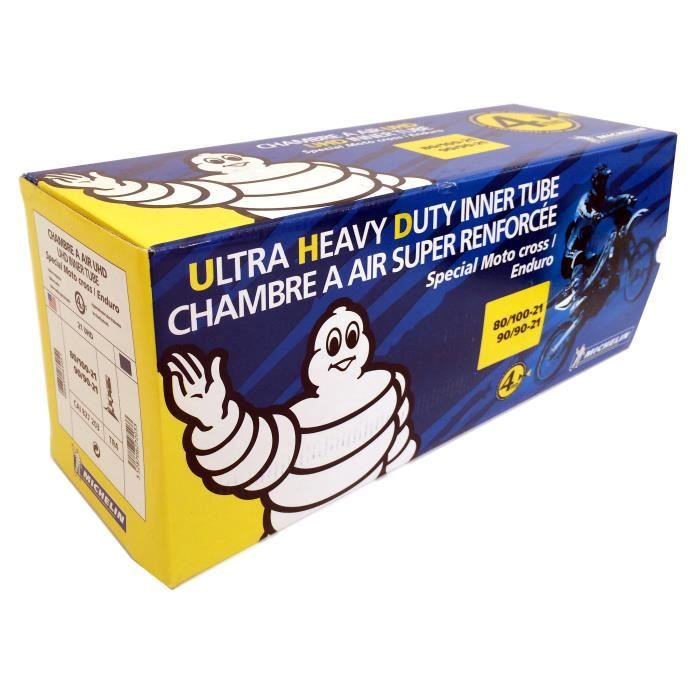 MICHELIN Chambre ? air 21UHD pour moto. Dimensions : 90/90-21 (80/100-21) 4 mm. Taille des pneus - compatibilité : 80/100-21 90/90-21.