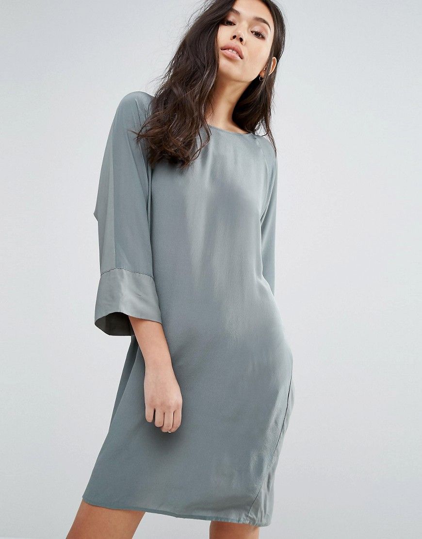 "Robe par Minimum, Soie lÃgère mÃlangÃe, Encolure bateau, Manches trois-quarts, Dos contrastant, Coupe ample au tombà lâche, Lavage en machine, 100% soie, Le mannequin mesure 174 cm (5'8,5") et porte l'article en taille UK 8 / EU 36 / US 4."