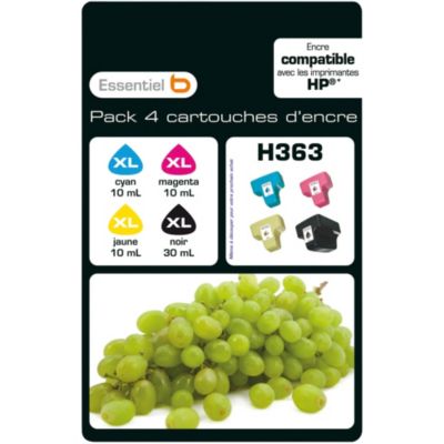 Cartouche d'encre Marque : Essentiel B - Référence : H363XL - Série Raisin - Coloris : Noir, Cyan, Magenta, Jaune