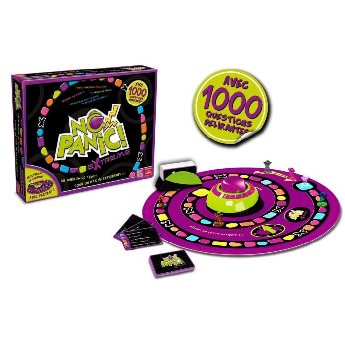 Goliath - Le célebre jeu No Panic en version plateau !Piochez une carte theme, puis lancez la rou Vous devez trouver autant de réponses qu'indiquées par la roue. Alors évitez a tout prix de tomber sur la case extreme ! Gardez votre sang froid, le temps joue contre vous : plus vous serez rapide, plus vous pourrez avancer sur le plateau. 2 a 18 joueurs. Mixte - A partir de 8 ans - Livré a l'unité